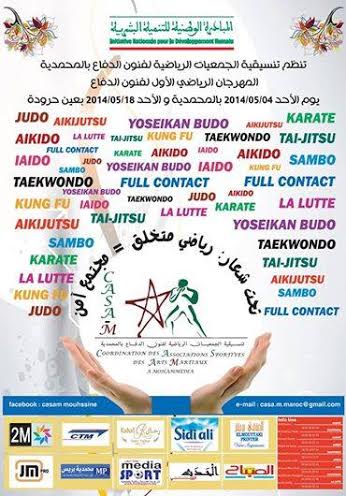 نظمت تنسيقية الجمعيات الرياضية لفنون الدفاع بالمحمدية لقاء تواصلي مع رؤساء الاندية والجمعيات الرياضية لاجل وضع البرنامج العام والنهائي للمهرجان الرياضي الكبير لفنون الدفاع والاول من نوعه بعمالة المحمدية ،المدعم من طرف المبادرة الوطنية للتنمية البشرية وذلك تحت شعار : ” رياضي متخلق يساوي مجتمع آمن ” من خلال منصتين كبيرتين الاولى يوم الاحد 4 ماي 2014 بالساحة الكبر امام اعدادية فلسطين على مستوى مصلى المدينة ابتداء من الساعة الثالثة بعد الزوال.