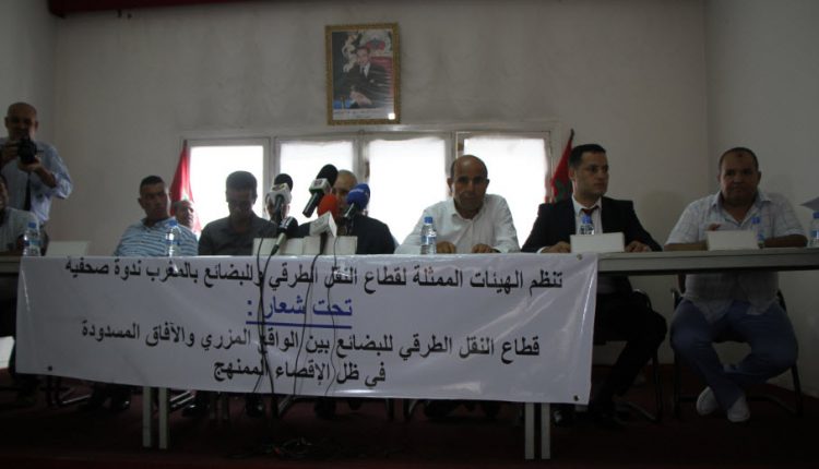 الهيئة الممثلة لقطاع النقل الطرقي والبضائع بالمغرب تنظم ندوة صحفيةمحمدية بريس تيفي إدارة الموقع نشر في 11 أغسطس 2018 الساعة 12 و 18 دقيقة مشاركة بفايسبوكFacebookFacebookمشاركة بتويترTwitterTwitter مشاركة بواتسابWhatsAppWhatsApp Share to ارسال ايميلEmailEmail مشاركة بلينكدانLinkedInLinkedInمشاركة بمسنجرMessengerMessenger طباعةPrintطباعة رابط المشاركة :