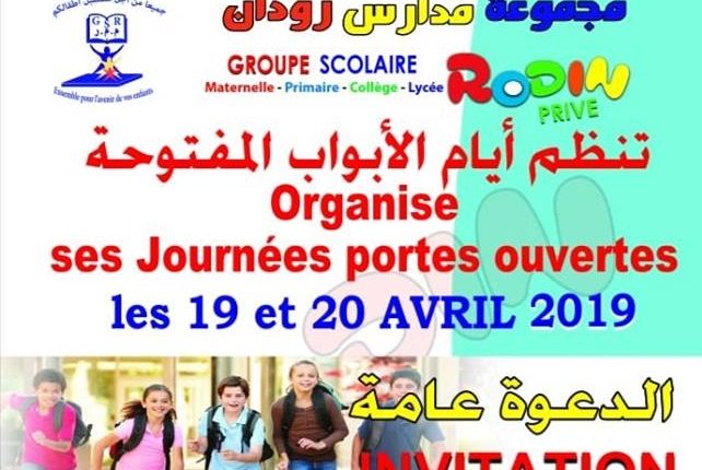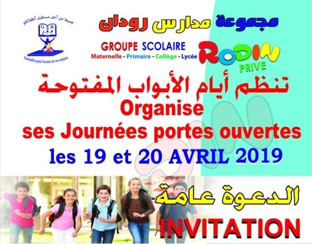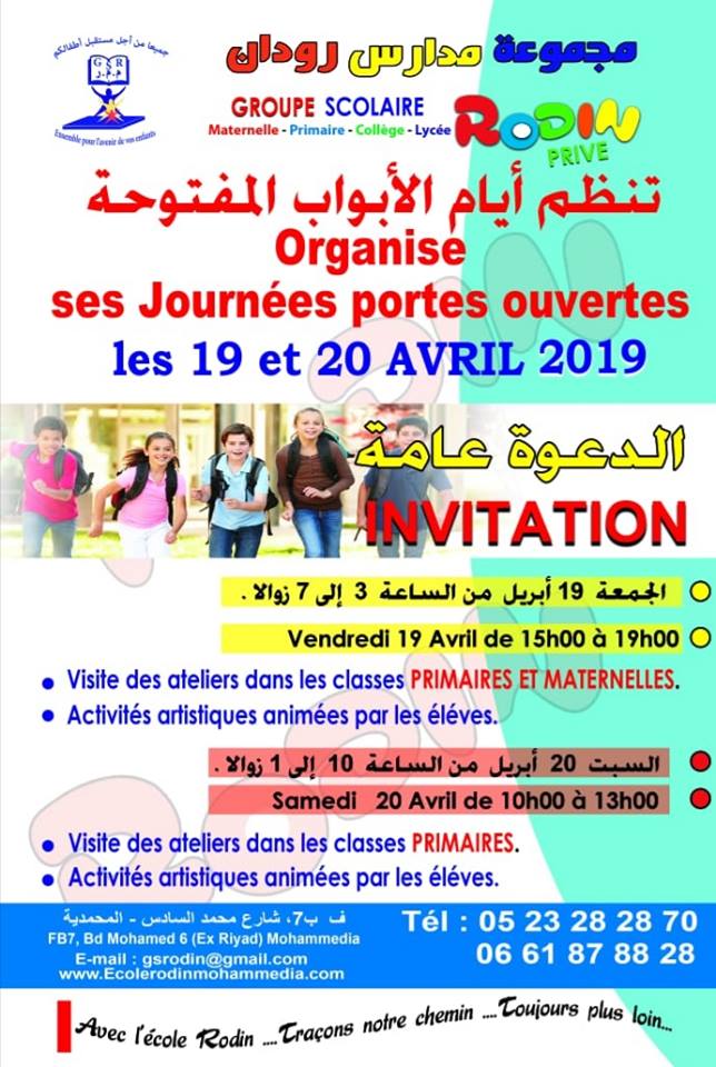 Groupe Scolaire Rodin Organise ses Journées Portes ouvertes Le Vendredi 19 Avril de 15h00 à 19h00 :*Visite des ateliers dans les classses PRIMAIRES ET MATERNELLES *Activités artistiques animées par les éléves. // Le Samedi 20 Avril de 10h00 à 13h00 : *Visite des ateliers dans les classses PRIMAIRES .*Activités artistiques animées par les éléves.