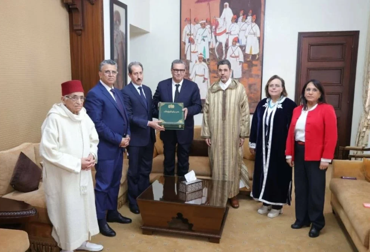 وقال أخنوش في تصريح للصحافة، عقب هذا اللقاء، ” استقبلت أعضاء الهيئة المكلفة بمراجعة مدونة الأسرة بعد انتهائها من مهامها، داخل الأجل المحدد لها في الرسالة الملكية السامية التي وجهها جلالة الملك حفظه الله، وتسلمت من منسقها الدوري تقريرا عن مقترحات التعديل بشأن مدونة الأسرة، قصد رفعها إلى جلالة الملك نصره الله “. وأضاف أن الهيئة اشتغلت ” وفق مقاربة تشاركية واسعة، عبر تنظيم جلسات للاستماع والإنصات إلى مختلف الفاعلين من منظمات المجتمع المدني العاملة في مجال المرأة والطفولة وحقوق الإنسان وأحزاب سياسية ومركزيات نقابية وقضاة وممارسين وباحثين أكاديميين ومؤسسات وقطاعات وزارية”. كما توصلت الهيئة، يضيف أخنوش، بمذكرات عبر البريد الإلكتروني. ثم انكبت على دراسة المقترحات التي انبثقت عن هذه المشاورات التشاركية الواسعة. وجدد رئيس الحكومة بهذه المناسبة التعبير عن خالص شكره وامتنانه ل” مولانا أمير المؤمنين، جلالة الملك نصره الله، على تفضله باعتماد هذه المقاربة التشاركية الواسعة، لإيجاد السبل الكفيلة بتمكين الأسرة المغربية من لعب أدوراها كاملة باعتبارها الخلية الأساسية للمجتمع. وأتشرف برفع مقترحات الهيئة المكلفة بمراجعة مدونة الأسرة إلى نظره السامي”.