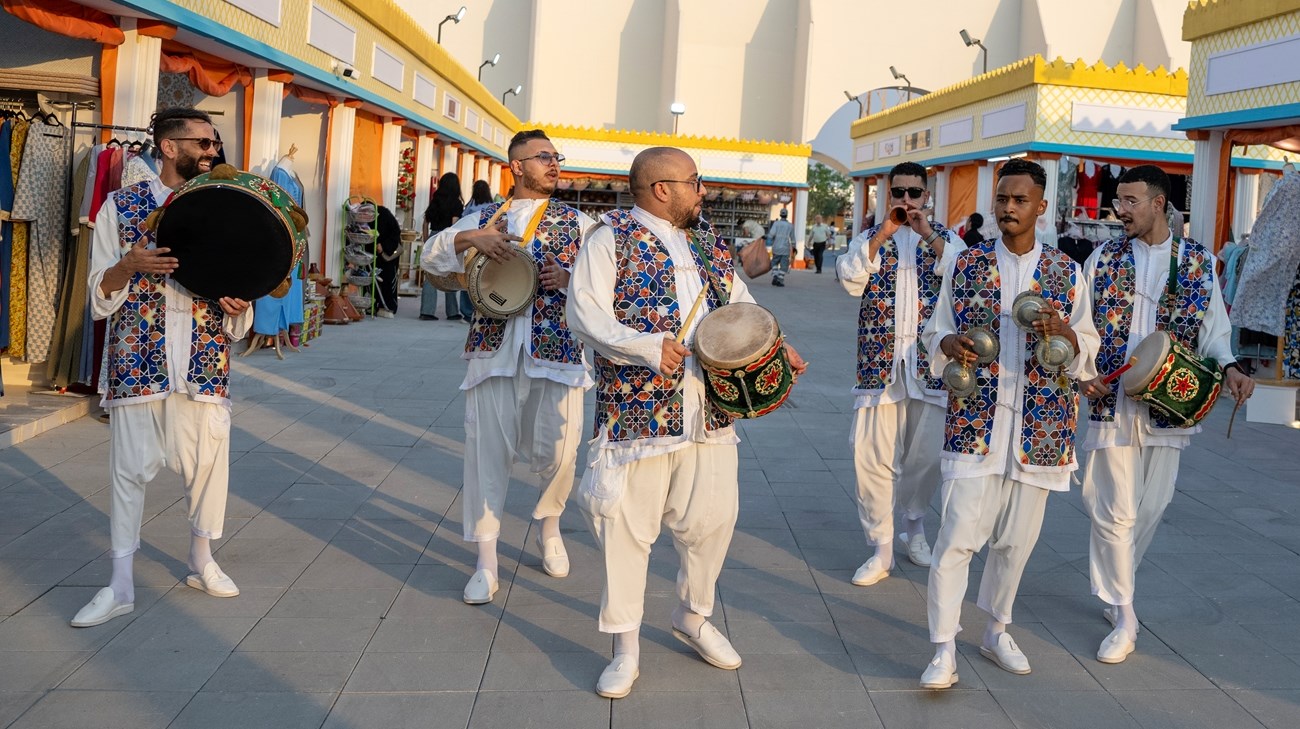 موسيقى مراكشية على أنغام الإيقاعات الأندلسية، تقدمها فرقة «العيساوي المغربية» للفنون الشعبية في «مهرجان الشيخ زايد» الذي تُقام فعالياته في منطقة الوثبة بأبوظبي، والمتواصل حتى 22 مارس 2026. وتؤدي الفرقة، عبر ساحاته وأجنحته المختلفة، فقرات فنية واستعراضات فلكورية بمصاحبة آلات القرع، وسط تفاعل كبير وحضور لافت من الزوّار من مختلف أنحاء العالم.