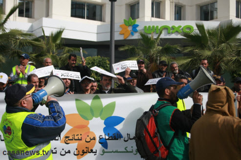 لعمال بشركة”ونكسو – winxo” امام مقرها الاجتماعي بالدارالبيضاء.